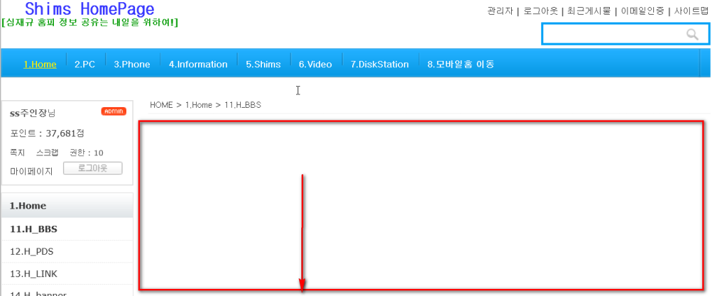 글보기의 아래로 내려가는 부분 어디를 수정 해야 하는지요