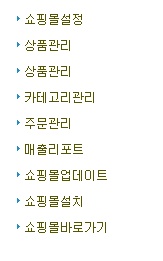 2. 쇼핑몰관리 왼쪽 메뉴를 보면 상품관리 메뉴가 2개가 뜹니다. 그리고 전에 말씀드렸던 것처럼 1차, 2차 카테고리 설정할때에 동시에 두개가 뜨는 현상이 있구요.