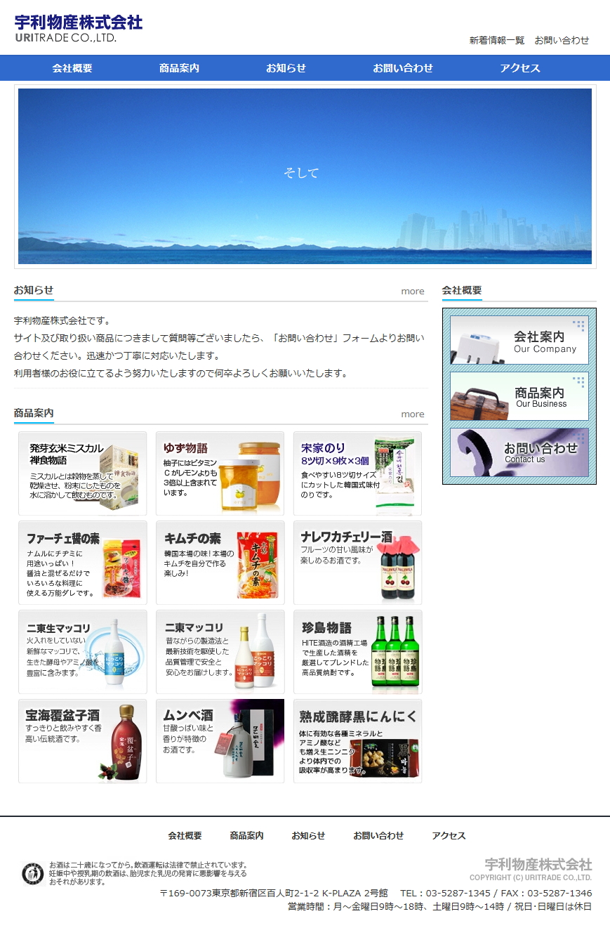 일본어 宇利物産ホームページへようこそ!