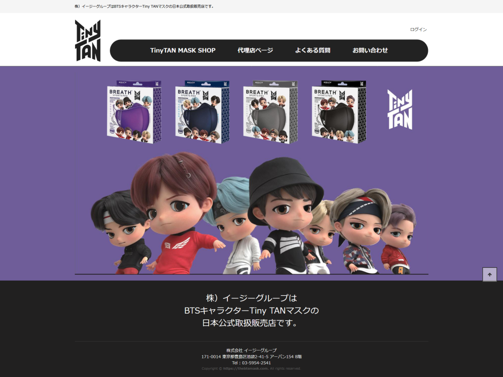 株)イージーグループはBTSキャラクターTiny TANマスクの日本正式取扱販売店です。