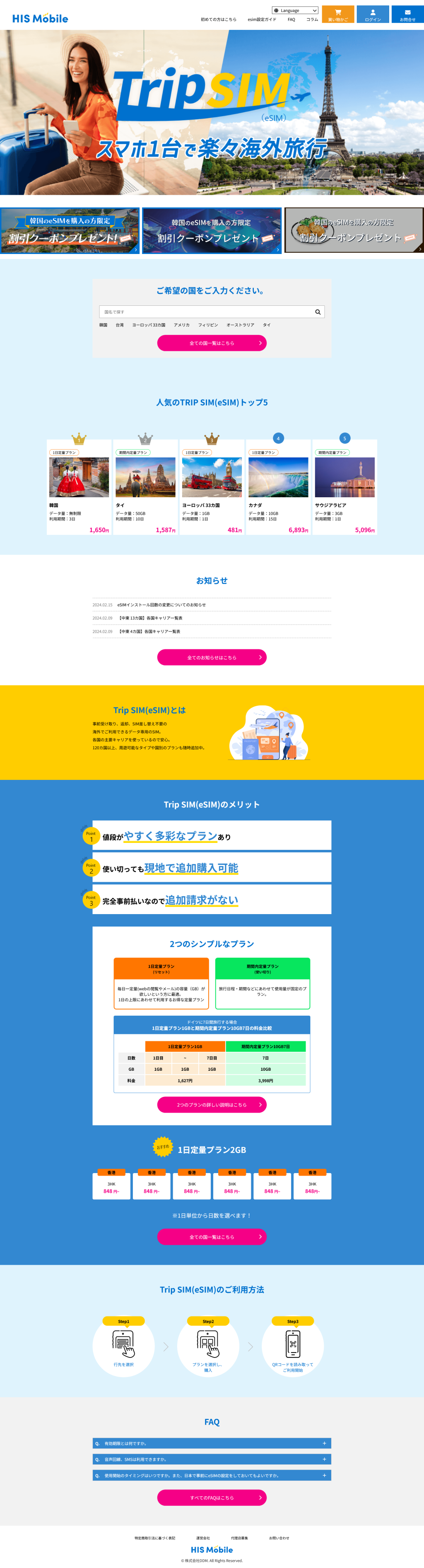 格安eSIM(スマホ)ならHISモバイル리뉴얼