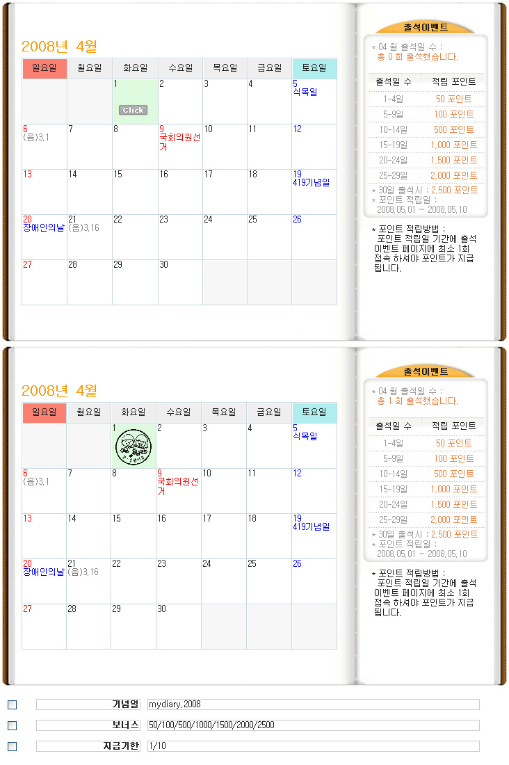 출석부 보너스 포인트 게시판 [수정본] > 스킨