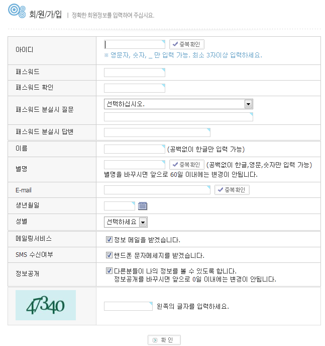 ajax 기능없는 기본 회원가입스킨090608 > 스킨