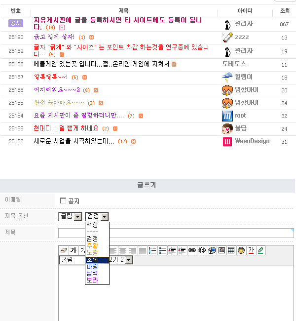 board 제목에 '글꼴', '색상' 설정할 수 있는 게시판