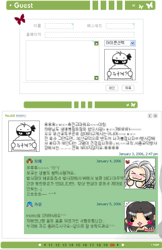 방명록 아이콘은 icon폴더에 'icon_0.jpg'부터 순서대로 만들어 주시면됩니다.