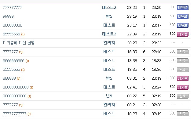 [처리함] 이라는 버튼을 클릭하면 해당글은 대기중 모드로 됩니다.
