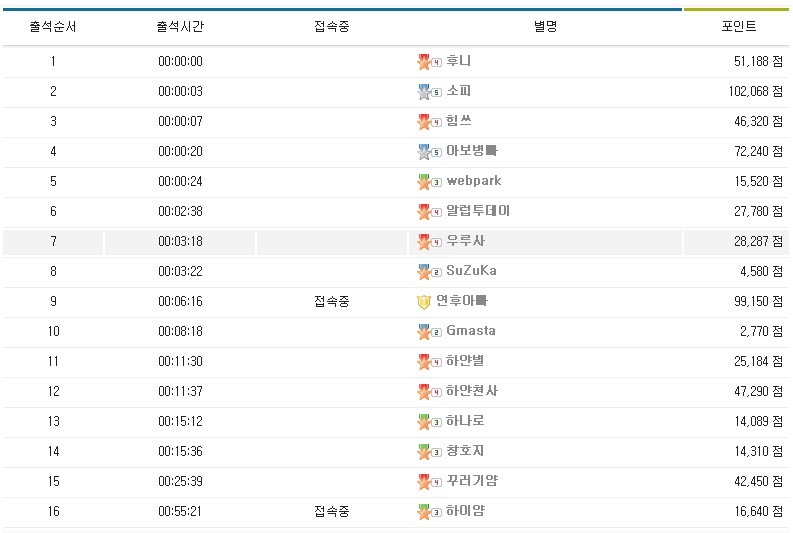 2. 같은 시간이면 출석순서(rank)도 같게 할 수 있나요?