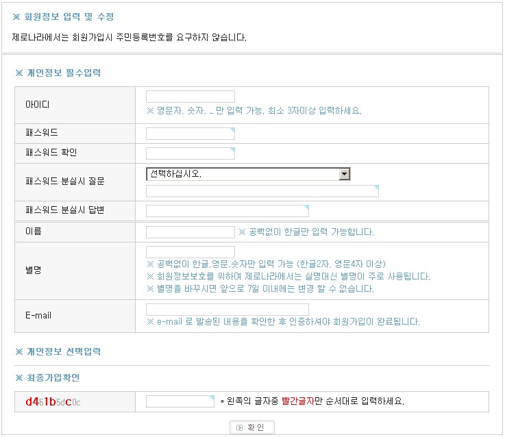 제로나라 선택사항 스크롤 회원가입폼 > 스킨