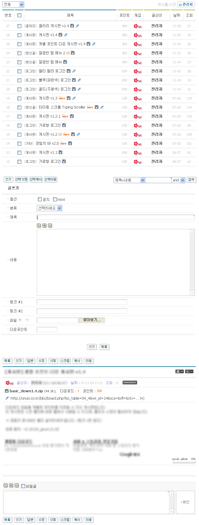 게시판 내용은 스크린샷을 참조하시면 되겠습니다.
