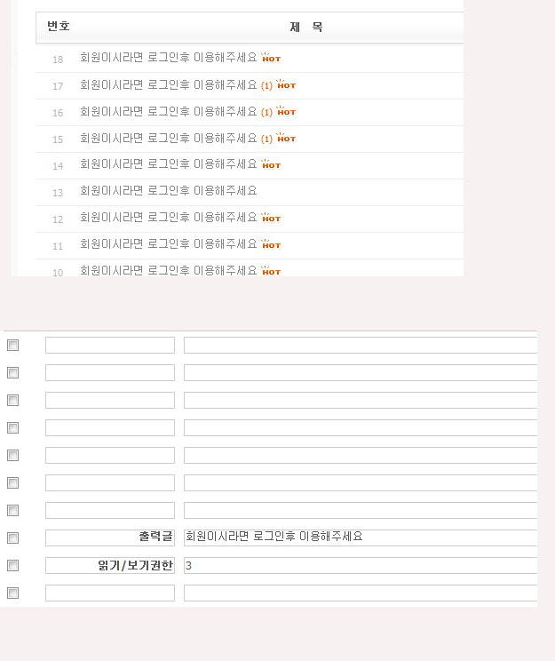 게시판 자체에서 권한에따라 목록이 보지지 않게 하였습니다