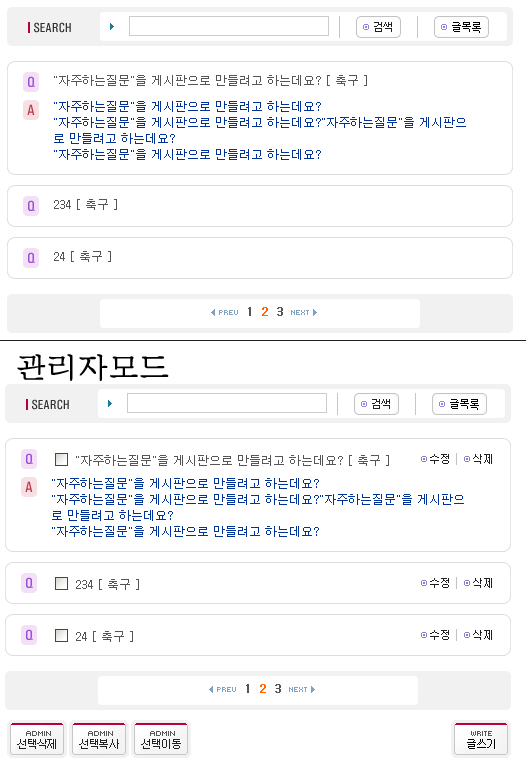 이렇게 자주하는질문"을 게시판형식으로 만들었습니다.