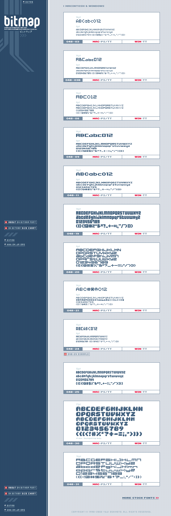 ■  비트 맵 폰트는 각각의 최소 사이즈로 작성되어 있기 때문에, 자간, 행간 등 용도에 따라 각각 조정해서 사용해 주세요.