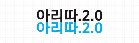 한글서체에서 오는 이미지가 일관성있게 유지되도록 서체의 운영방법은 장평 100%, 자간 0을 기준으로 하여 각 어플리케이션 예시에 따라 사용하도록 합니다.