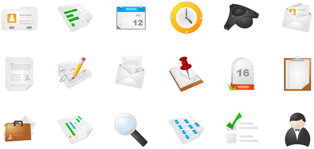 Here is another simple icon set that covers various aspects of a Project. Here is some more info: